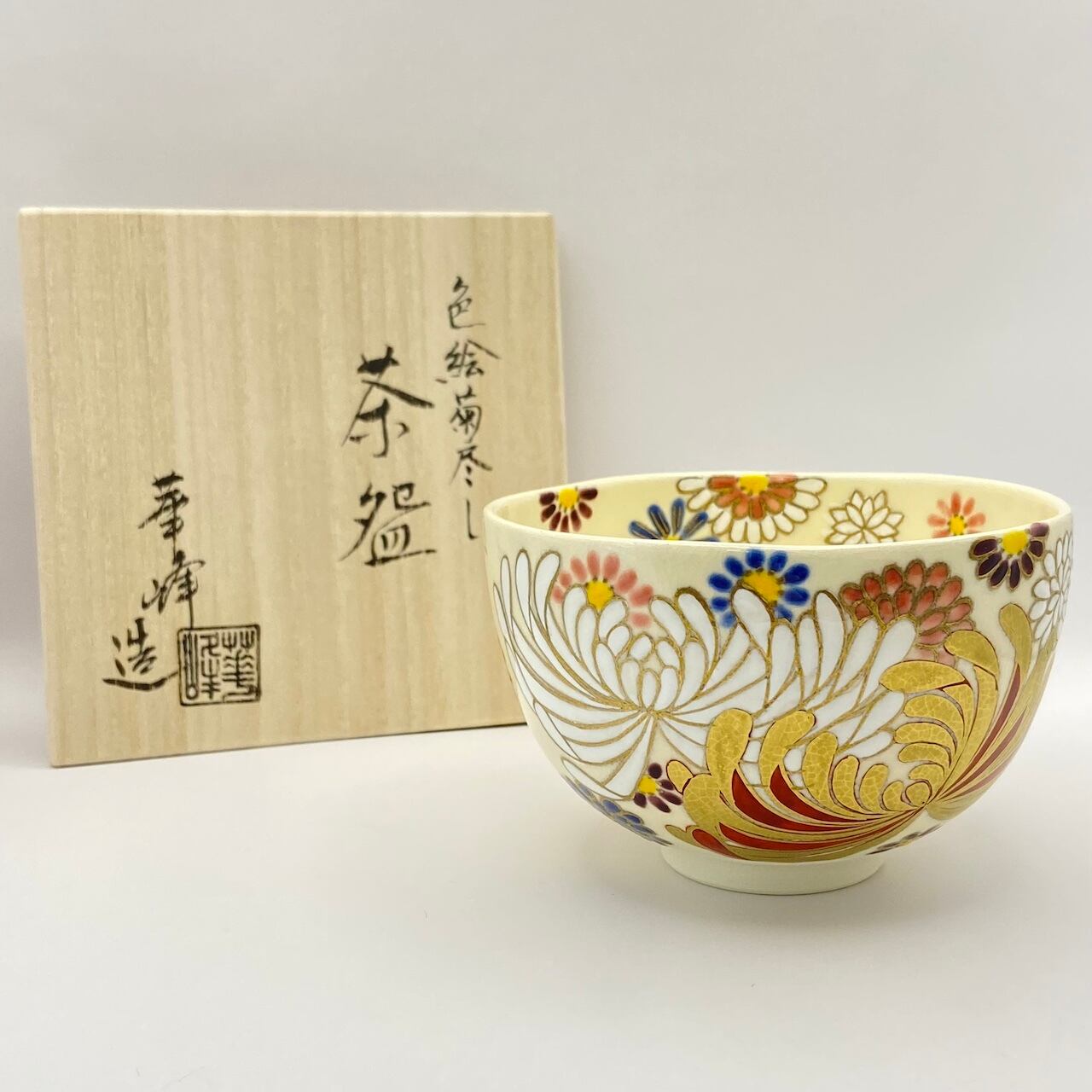 【新品】茶碗 色絵 菊尽し 中村華峰 共箱入