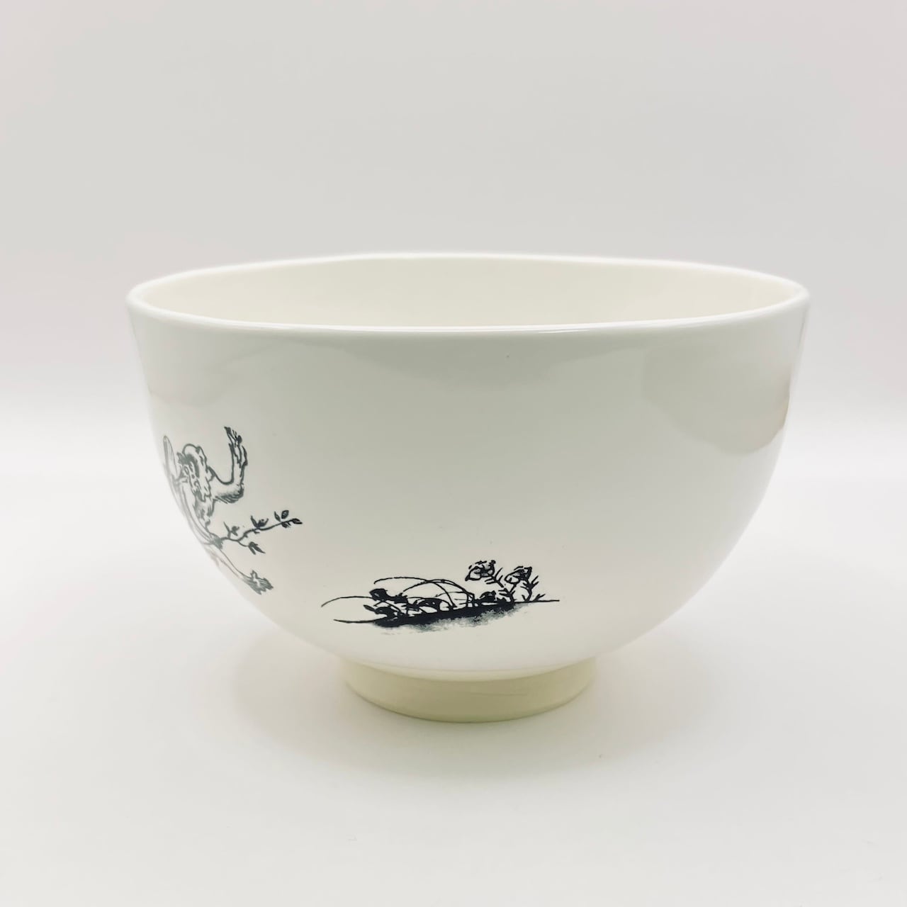 【新品】茶碗 和モダン 鳥獣戯画 白 加藤藤山 紙箱入