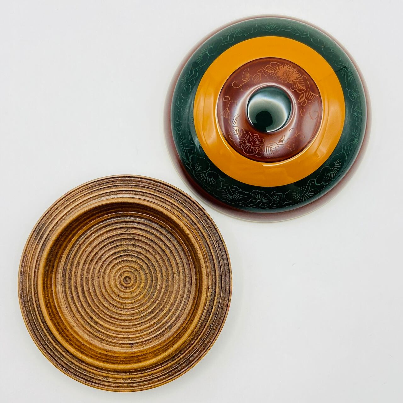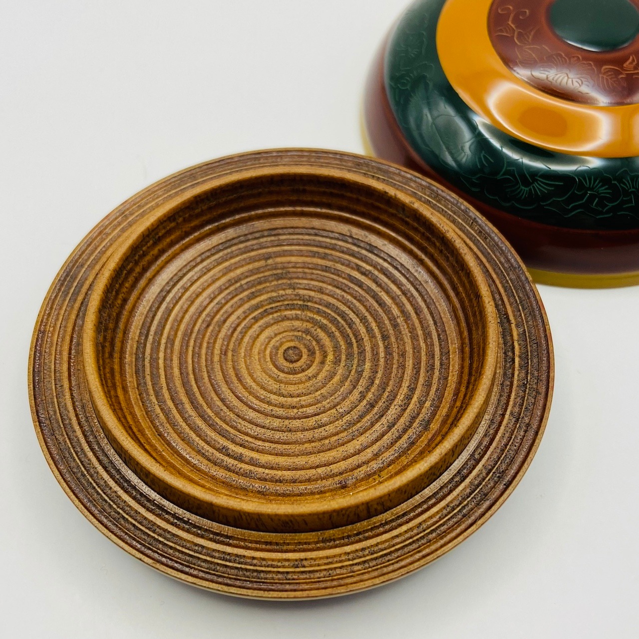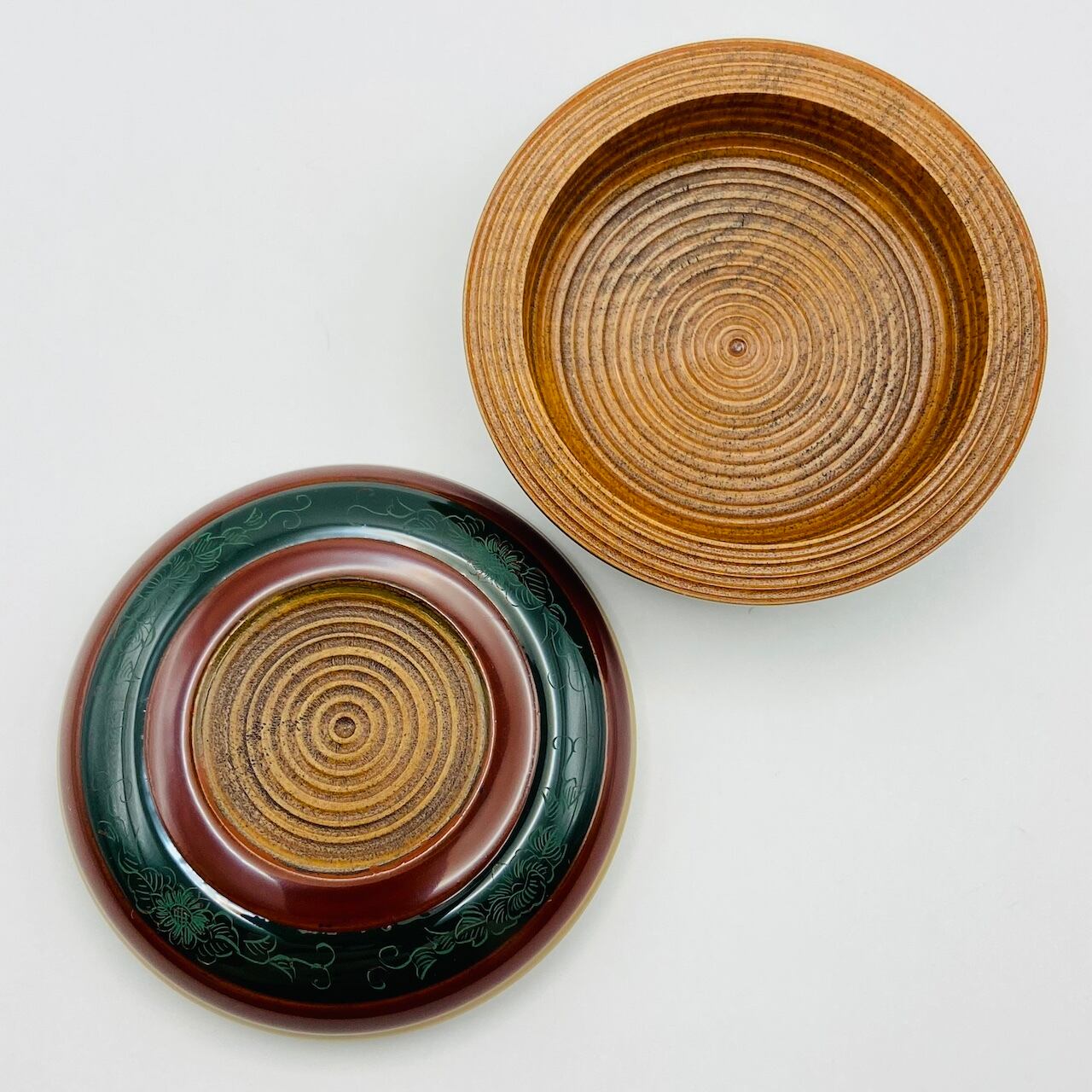 外側は独楽塗で線彫りが施され、内側は拭漆仕上げです。