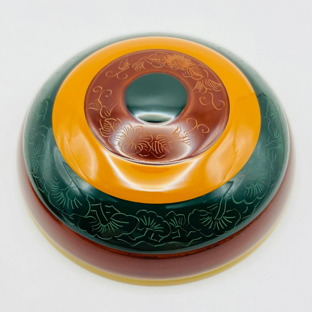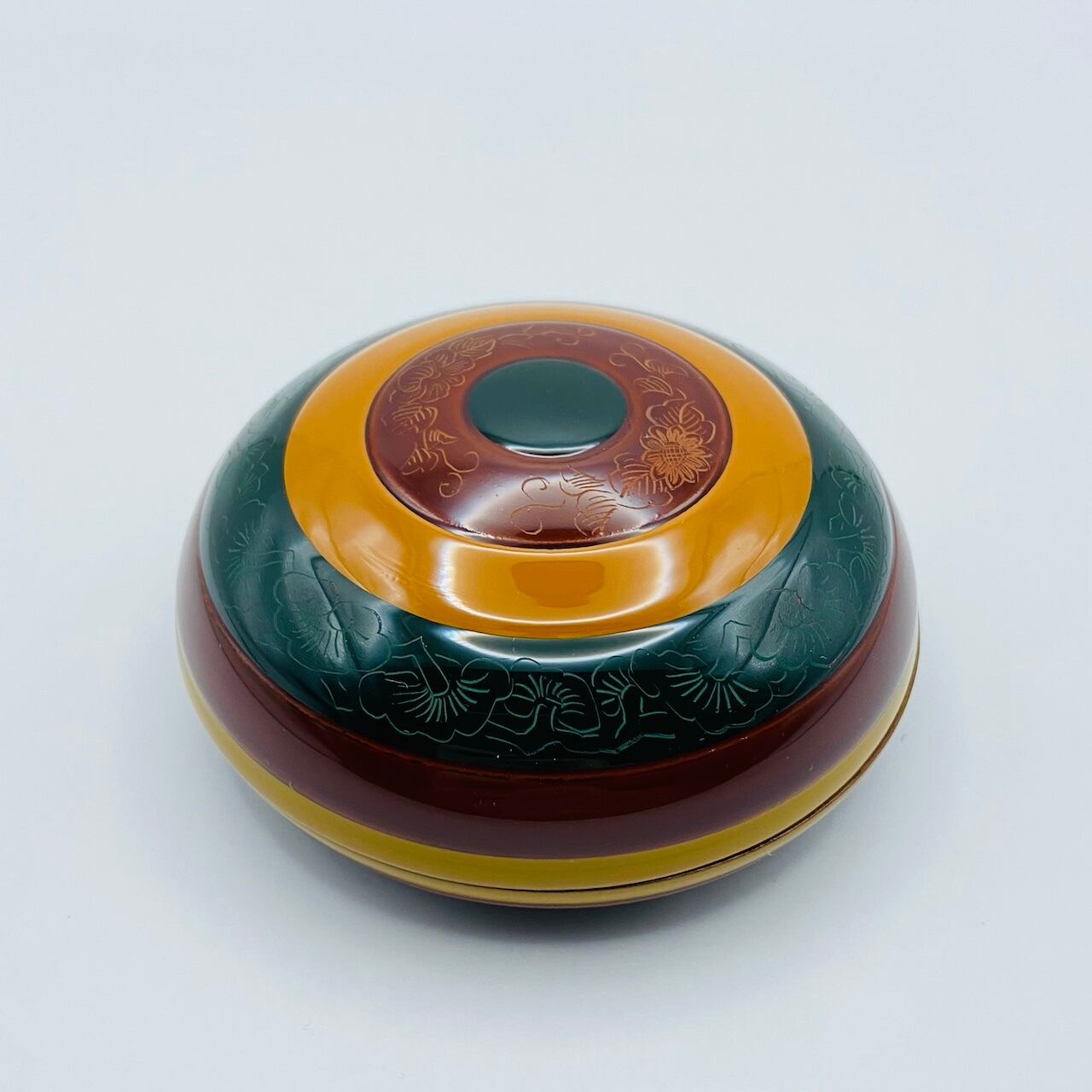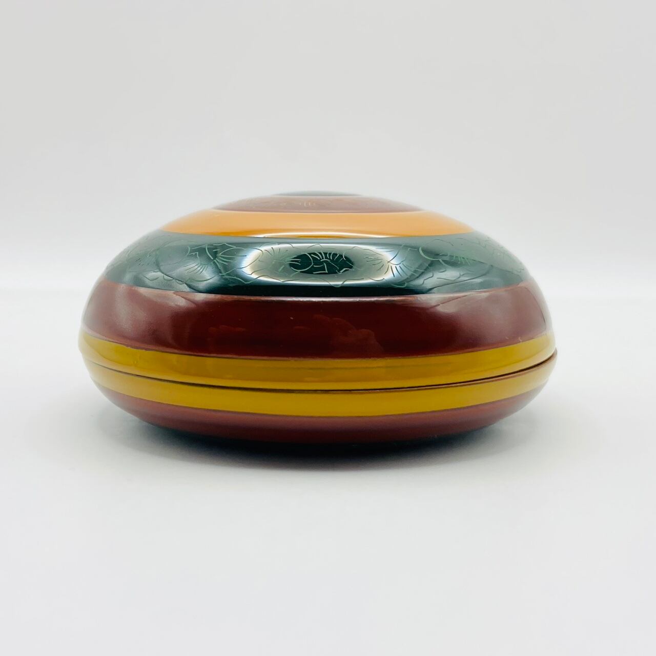 外側は独楽塗で線彫りが施され、内側は拭漆仕上げです。