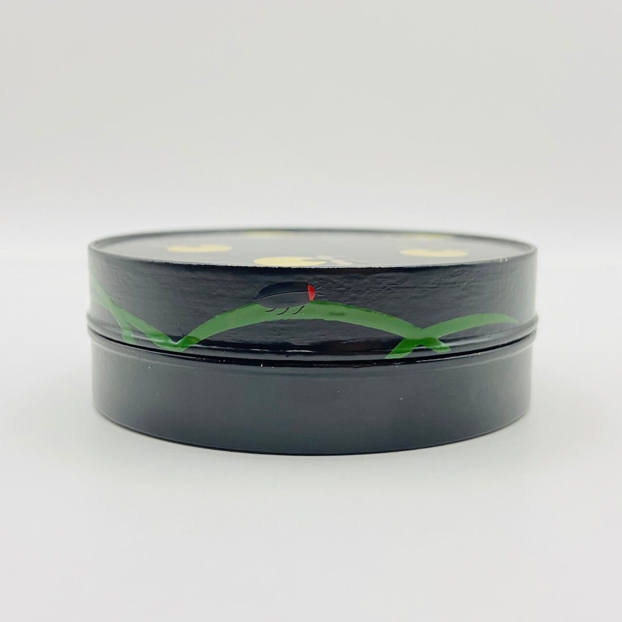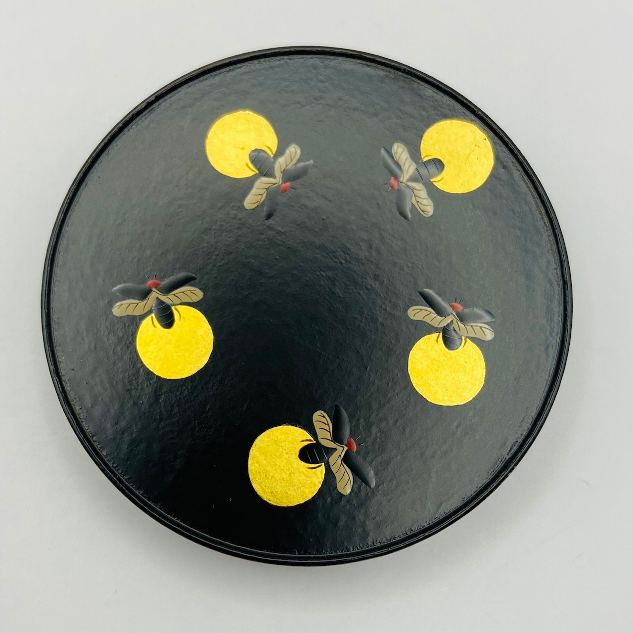 夜空に浮かぶ蛍が蒔絵で表現され、幻想的な雰囲気です。