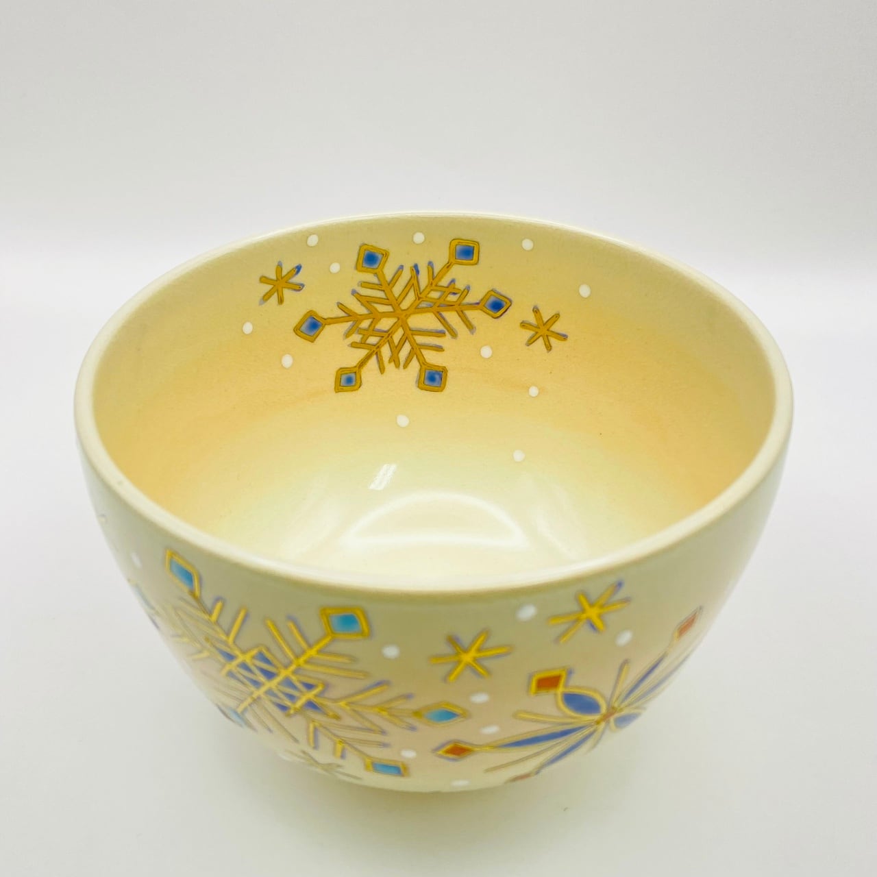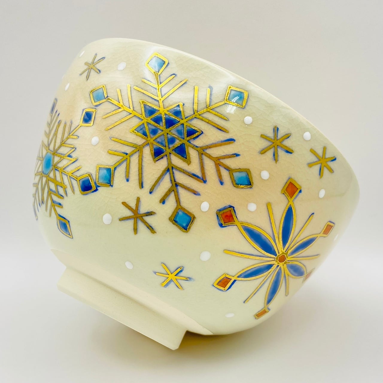 優雅で彩りのある雪の結晶の文様が、厳冬の美を感じさせる作品です。