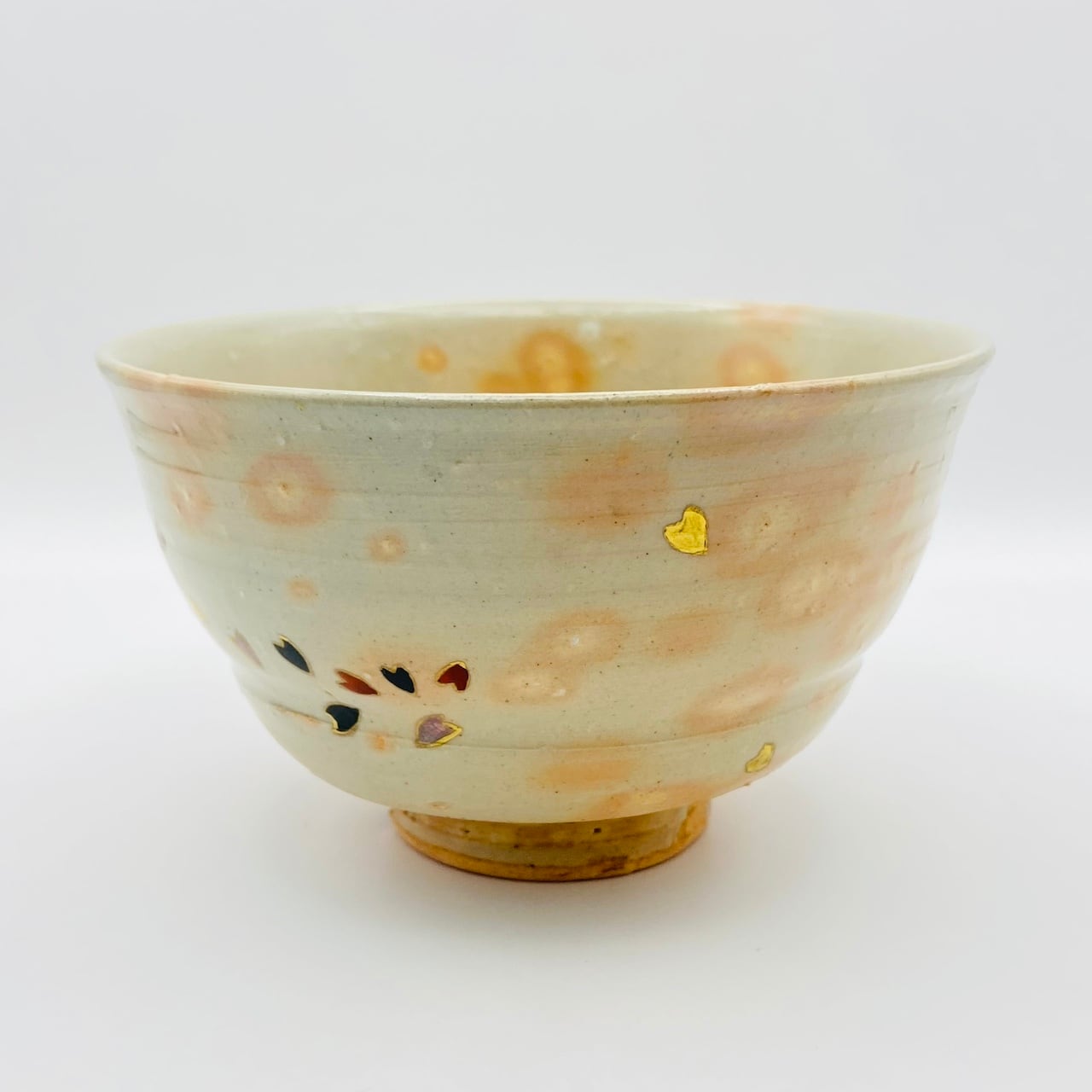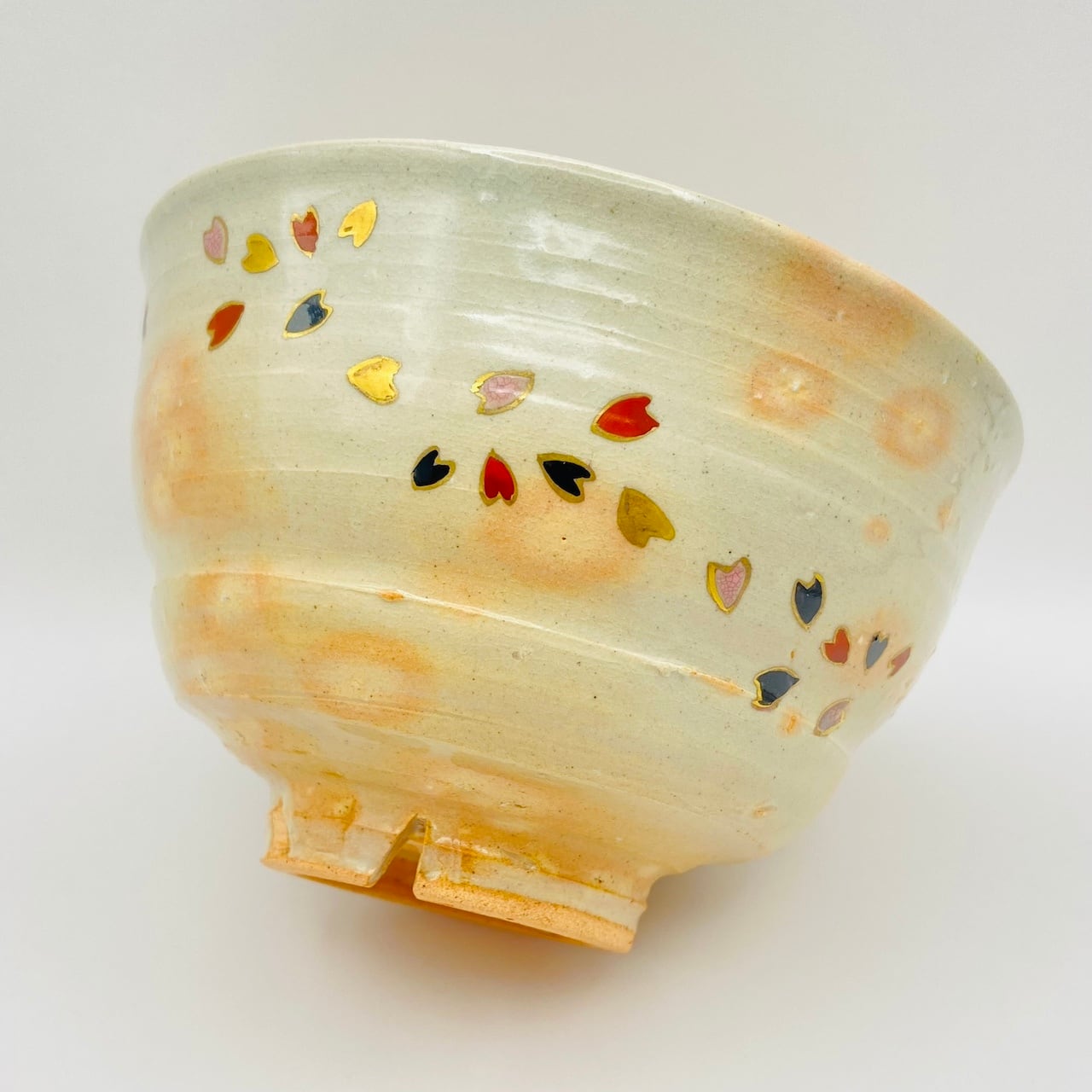 春の息吹が感じられる美しい桜散しのデザインが施された抹茶茶碗です。