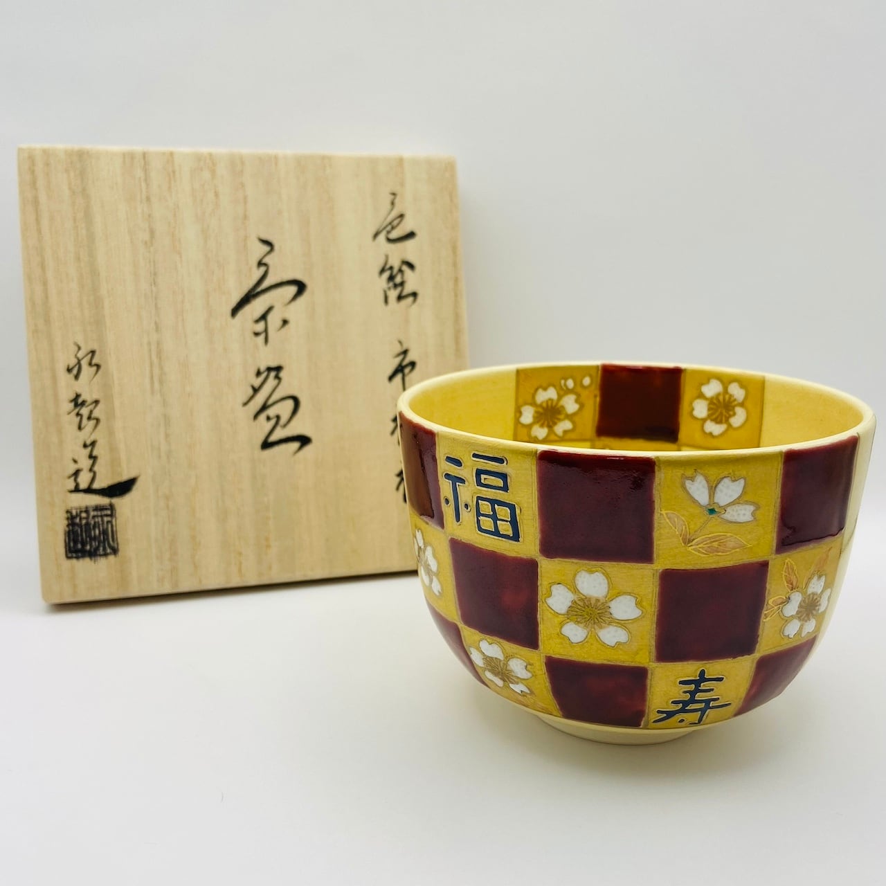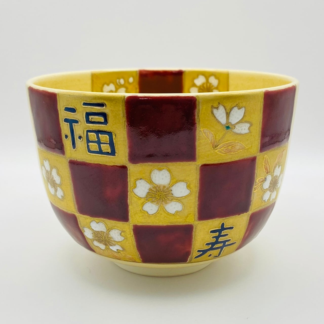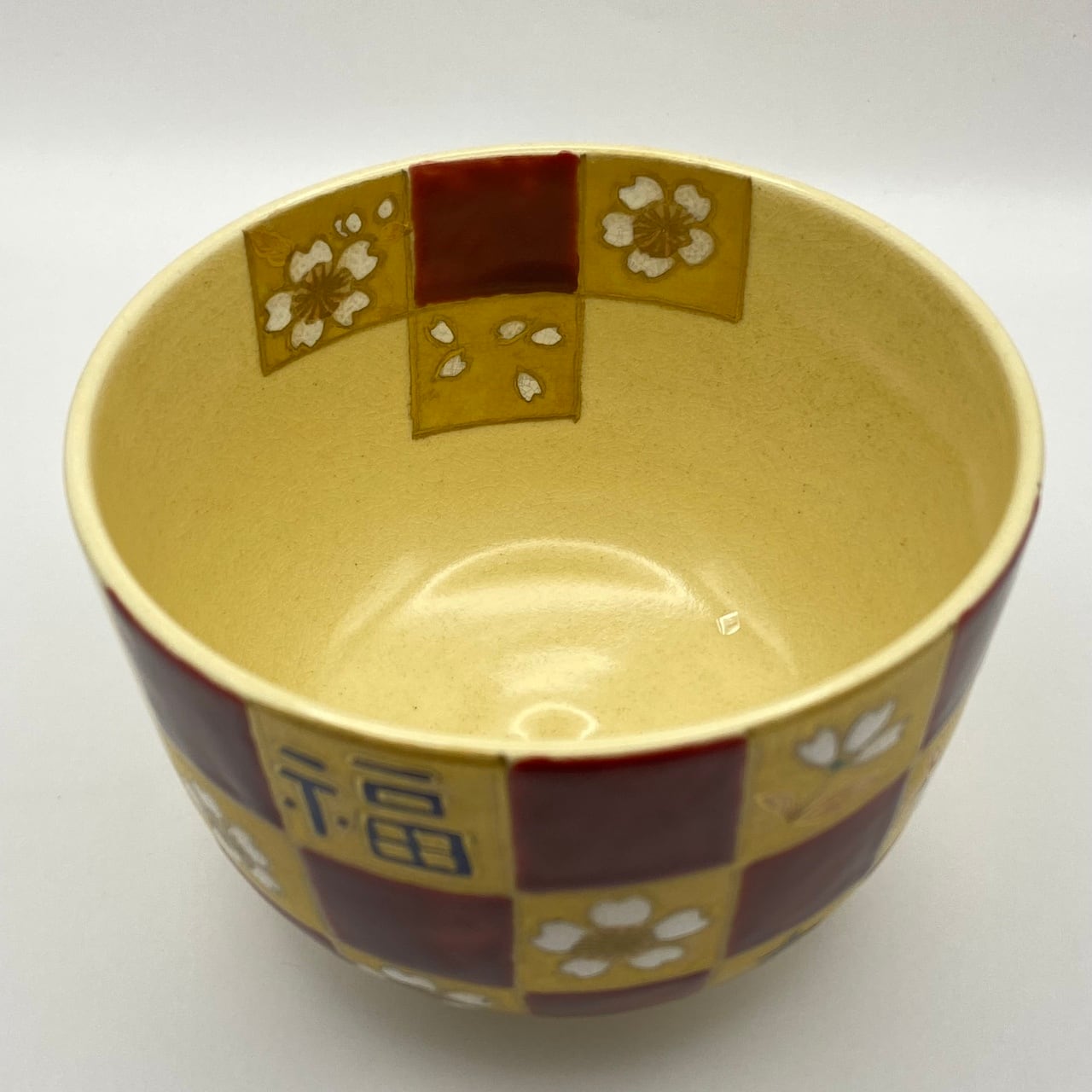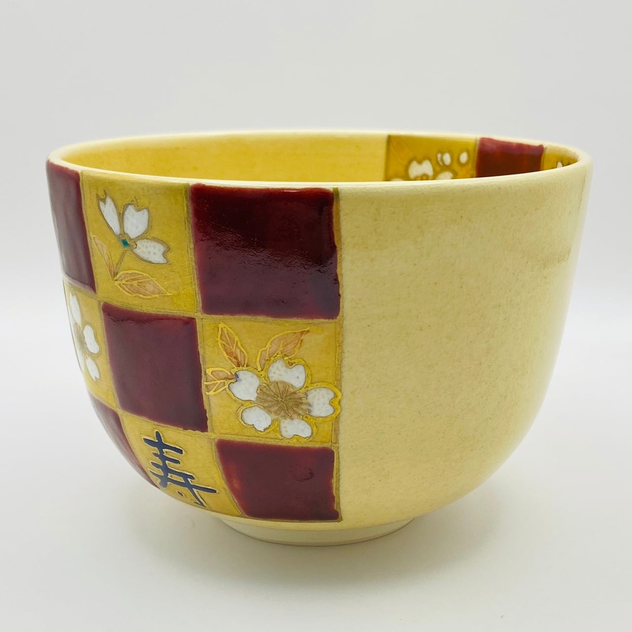 【新品】茶碗 色絵 市松桜 加藤永起 共箱入