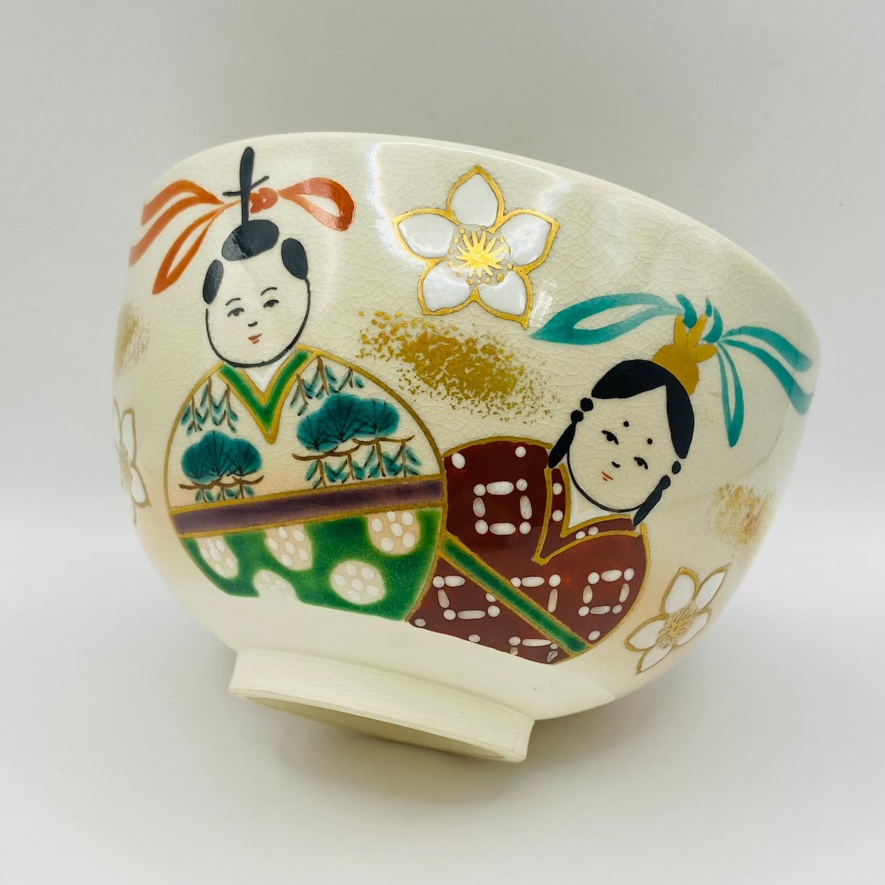 柔和な表情の鞠雛が描かれたお茶碗です。