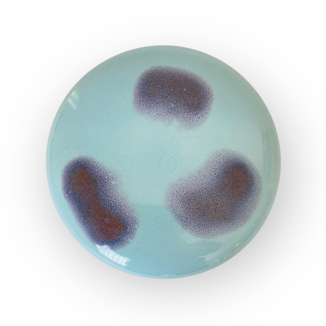 鈞窯(きんよう)…中国の金代・明代に鈞州と呼ばれた河南省禹県を中心に、宋・元時代以降華北各地で焼造された、青みのある失透性白釉のかかった陶器の総称。銅の発色による紅・紫の斑文のあるものや、全体にわたって紫・紅・藍釉のかかった華やかなものもある。