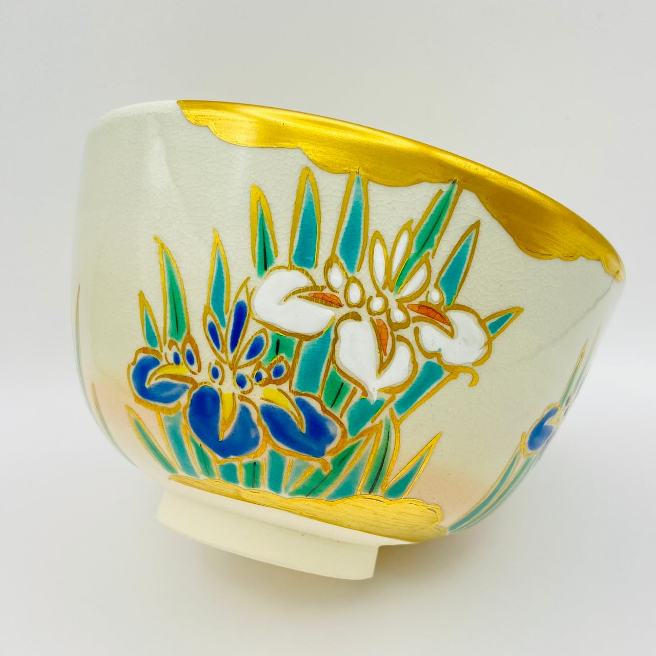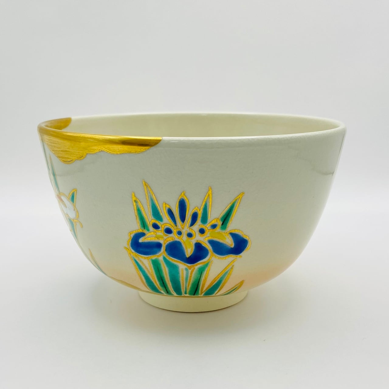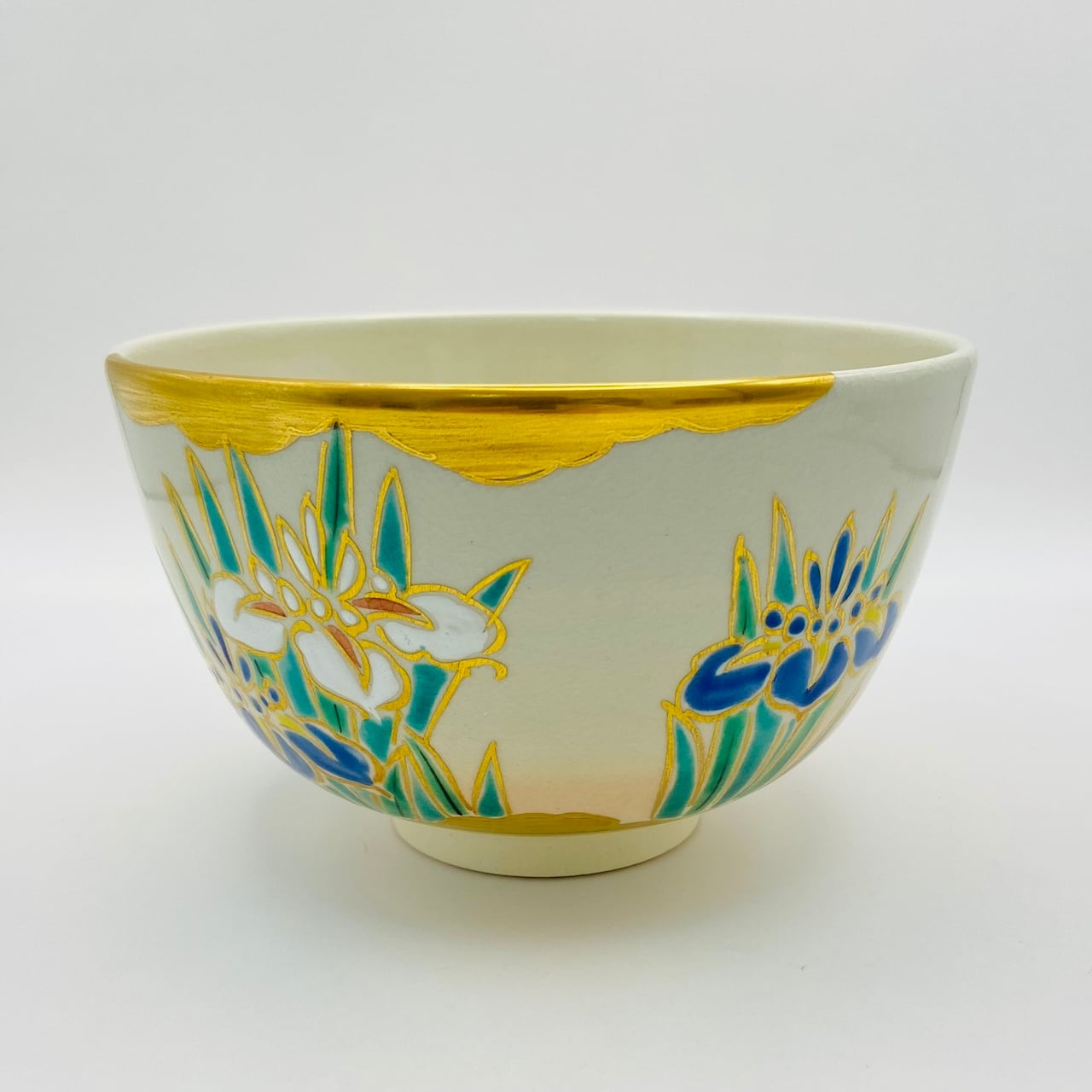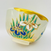 美しい菖蒲の花が描かれた抹茶茶碗です。