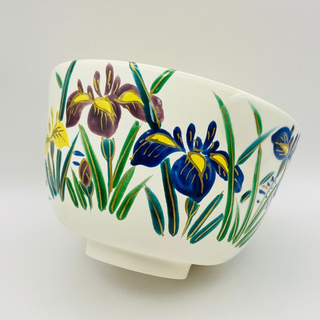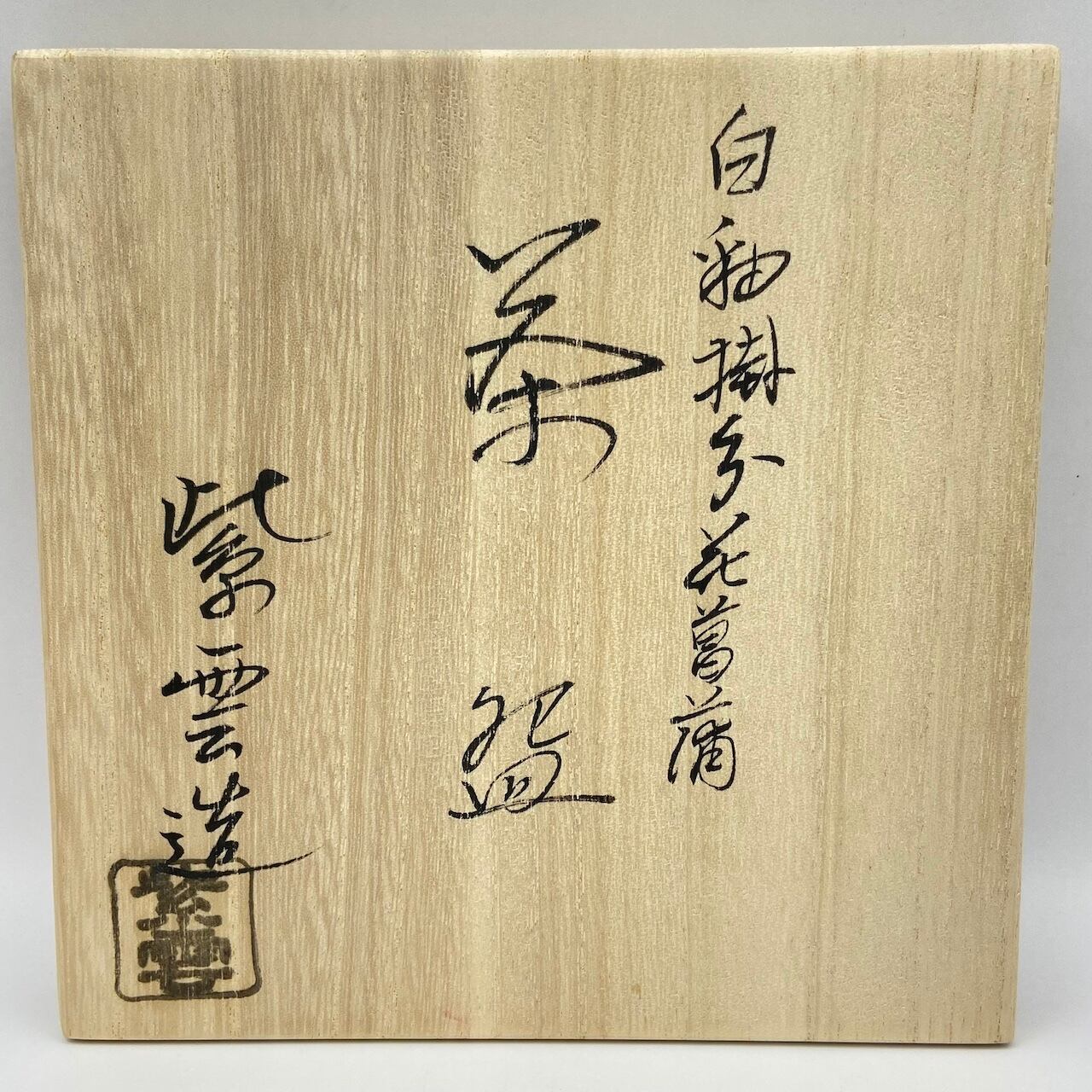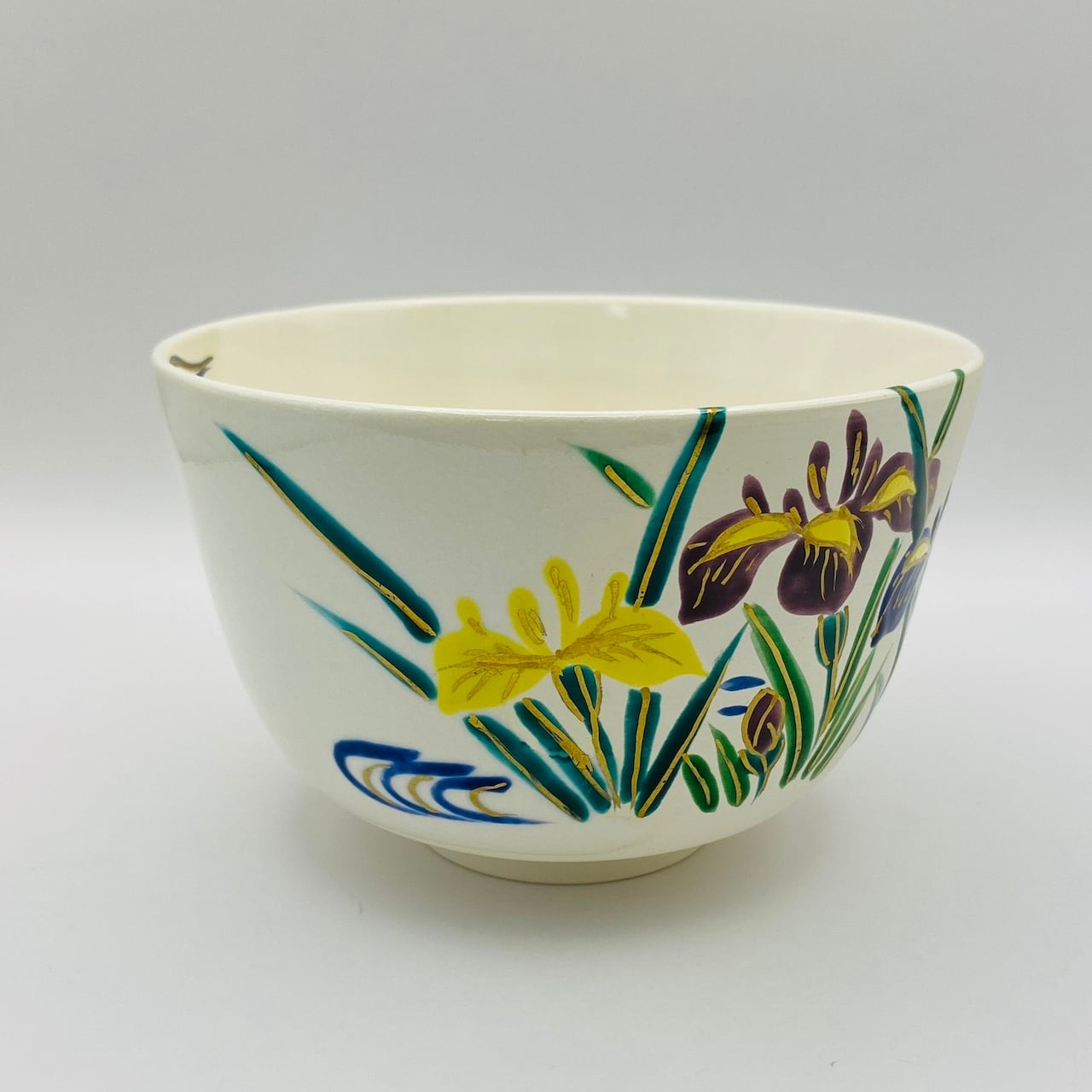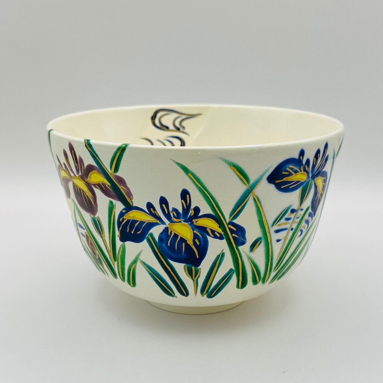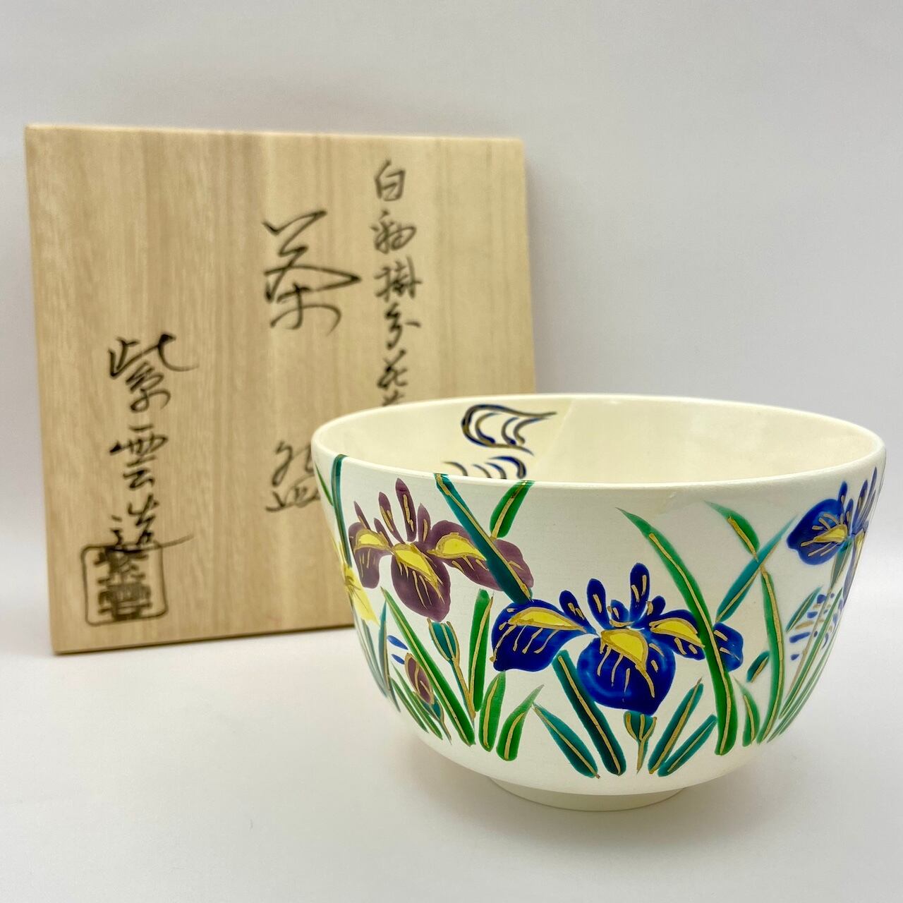 【新古】茶碗 白釉掛分 花菖蒲 橋本紫雲 共箱入