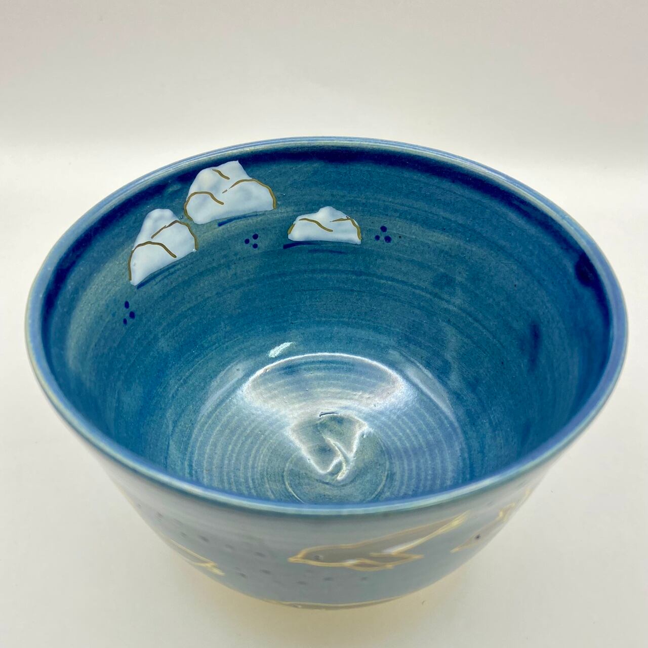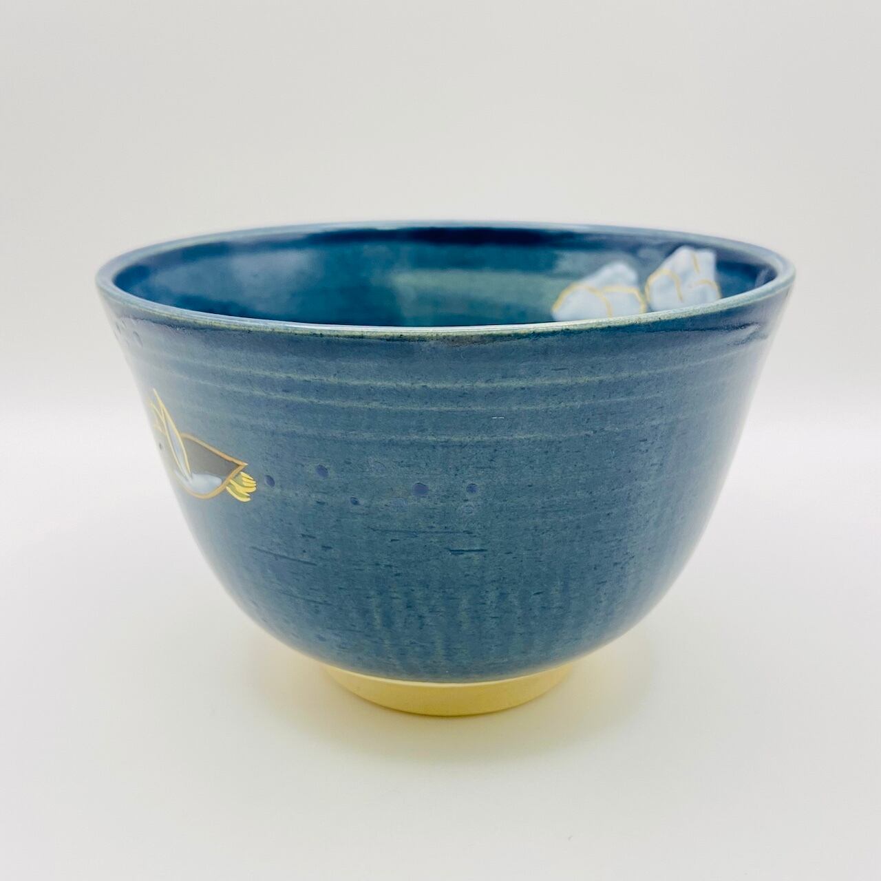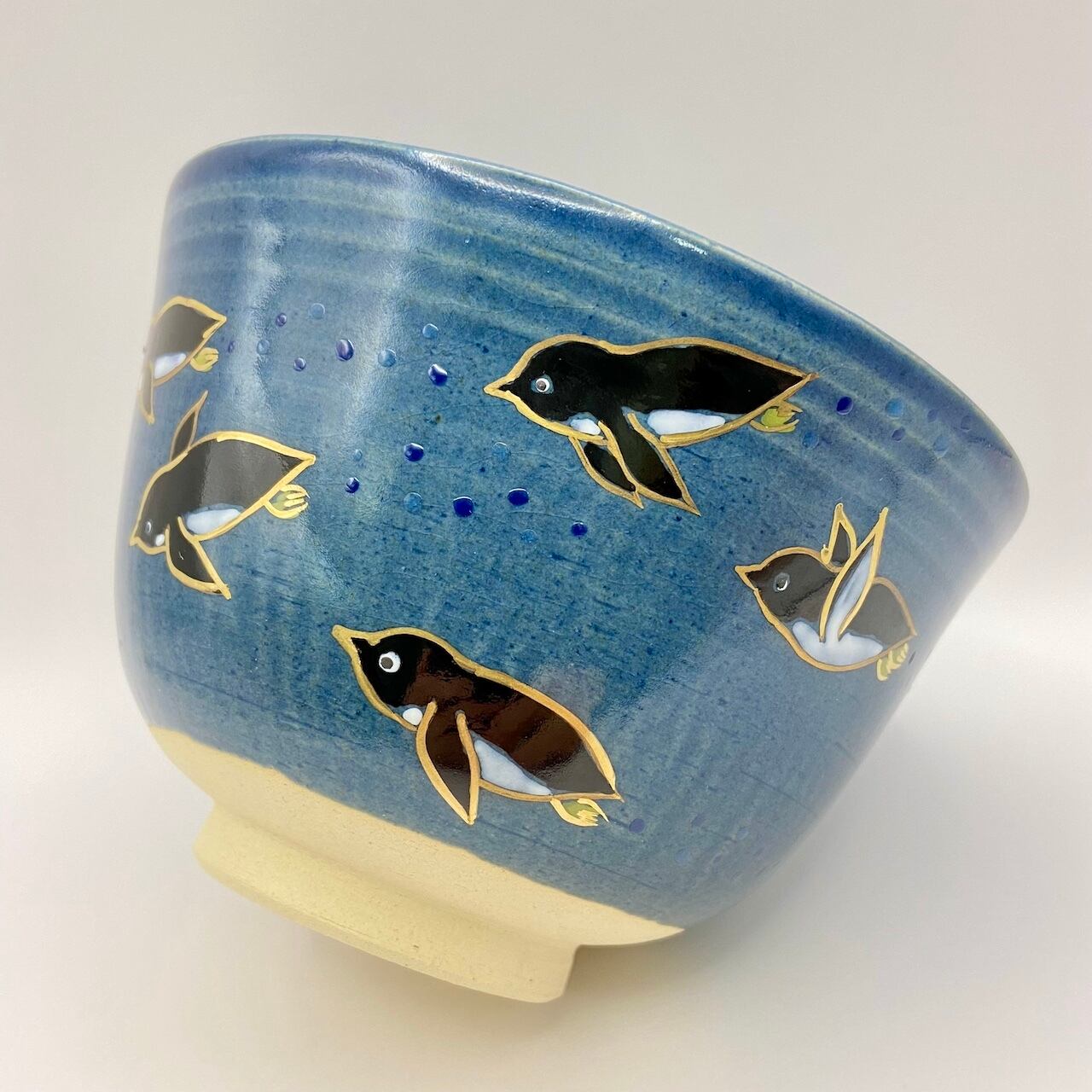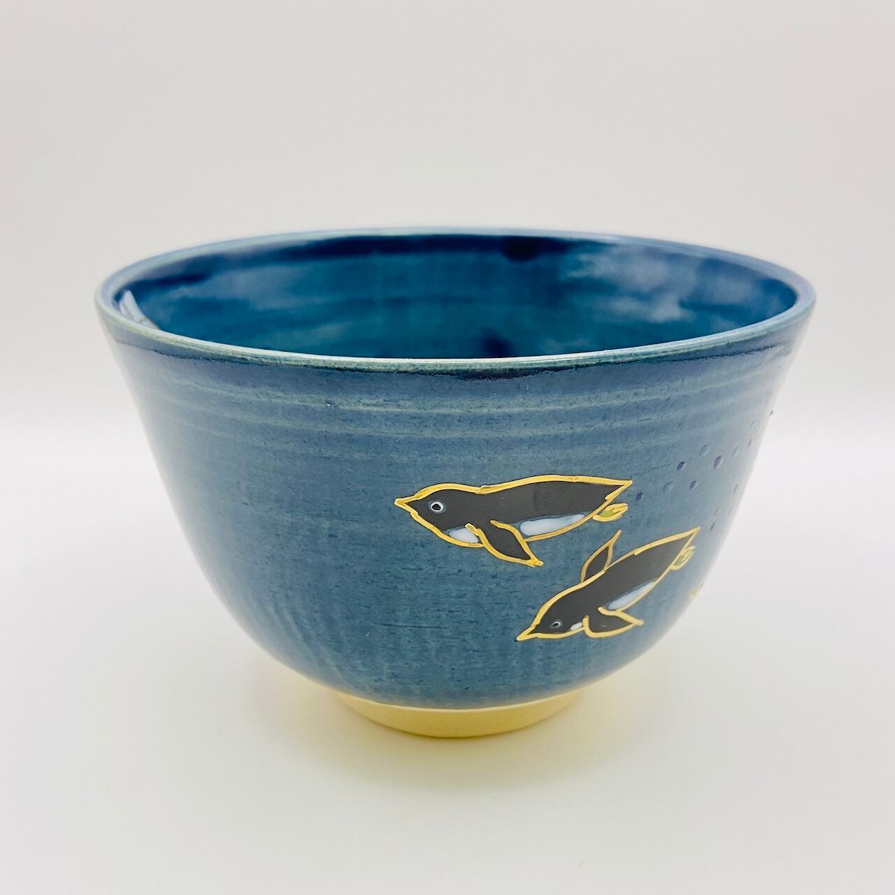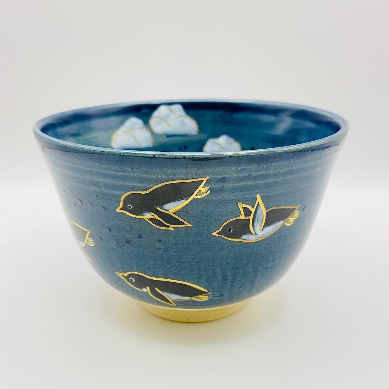 【新品】茶碗 紺釉 ペンギン 東山深山 紙箱入