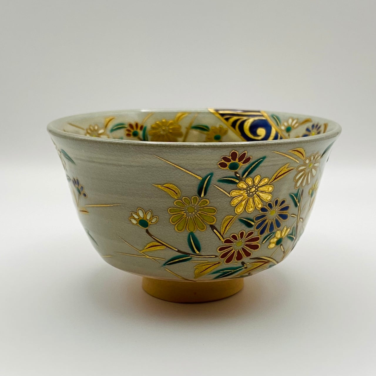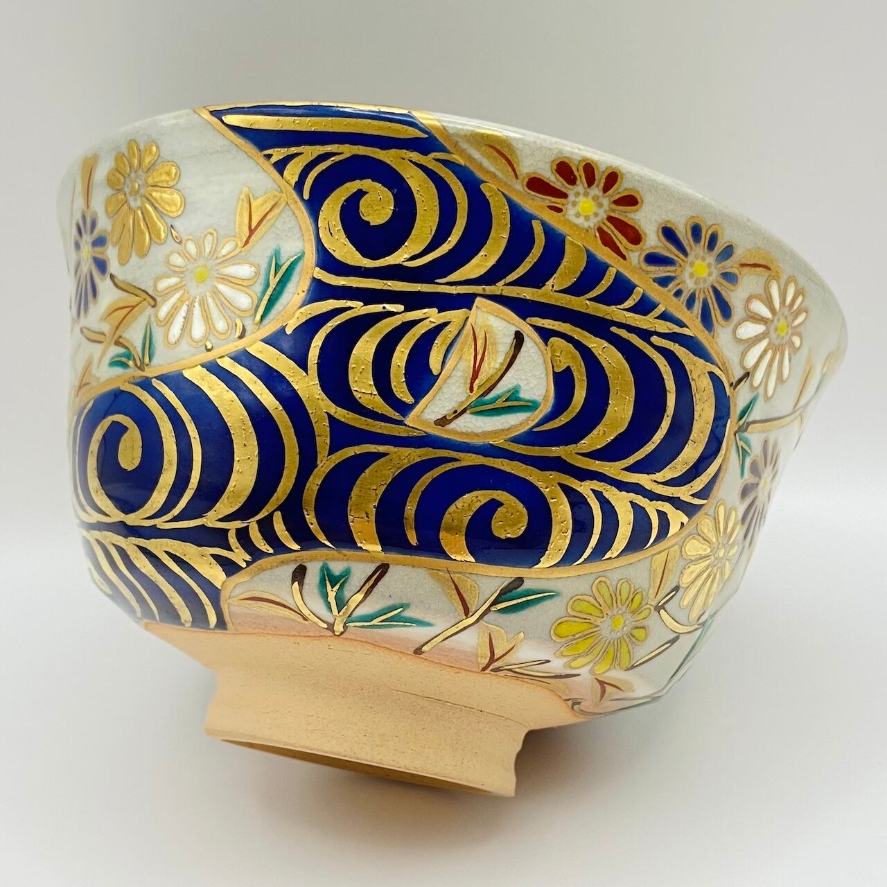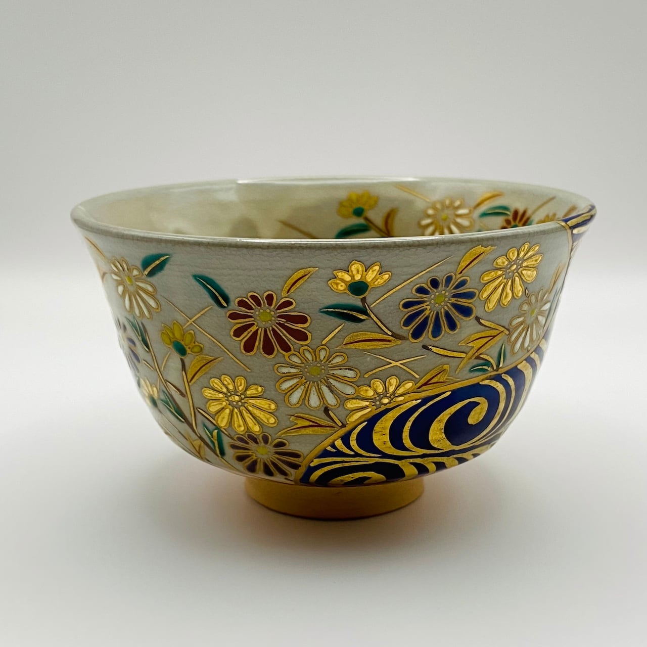 【古物】茶碗 光琳水 菊 上山善峰 共箱入