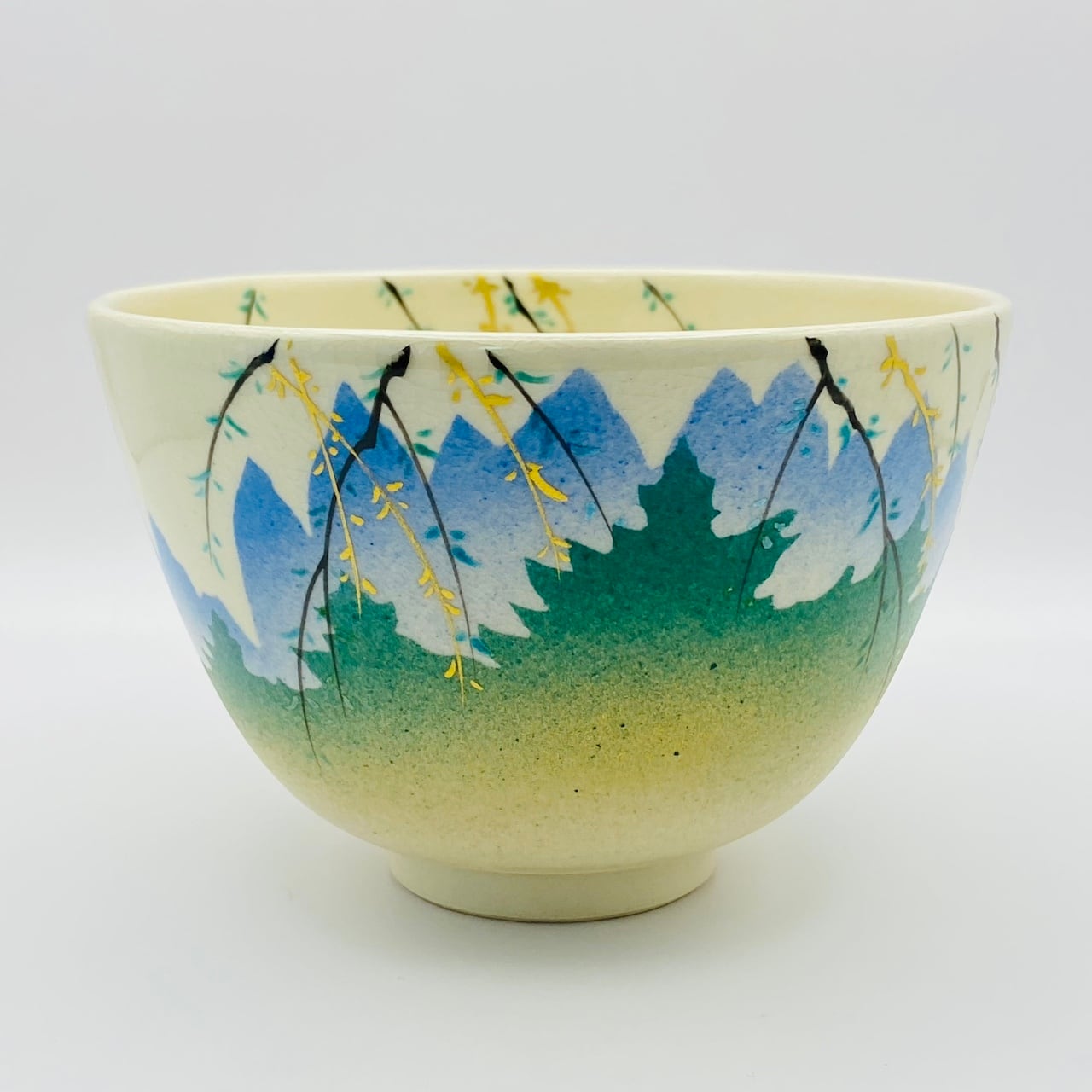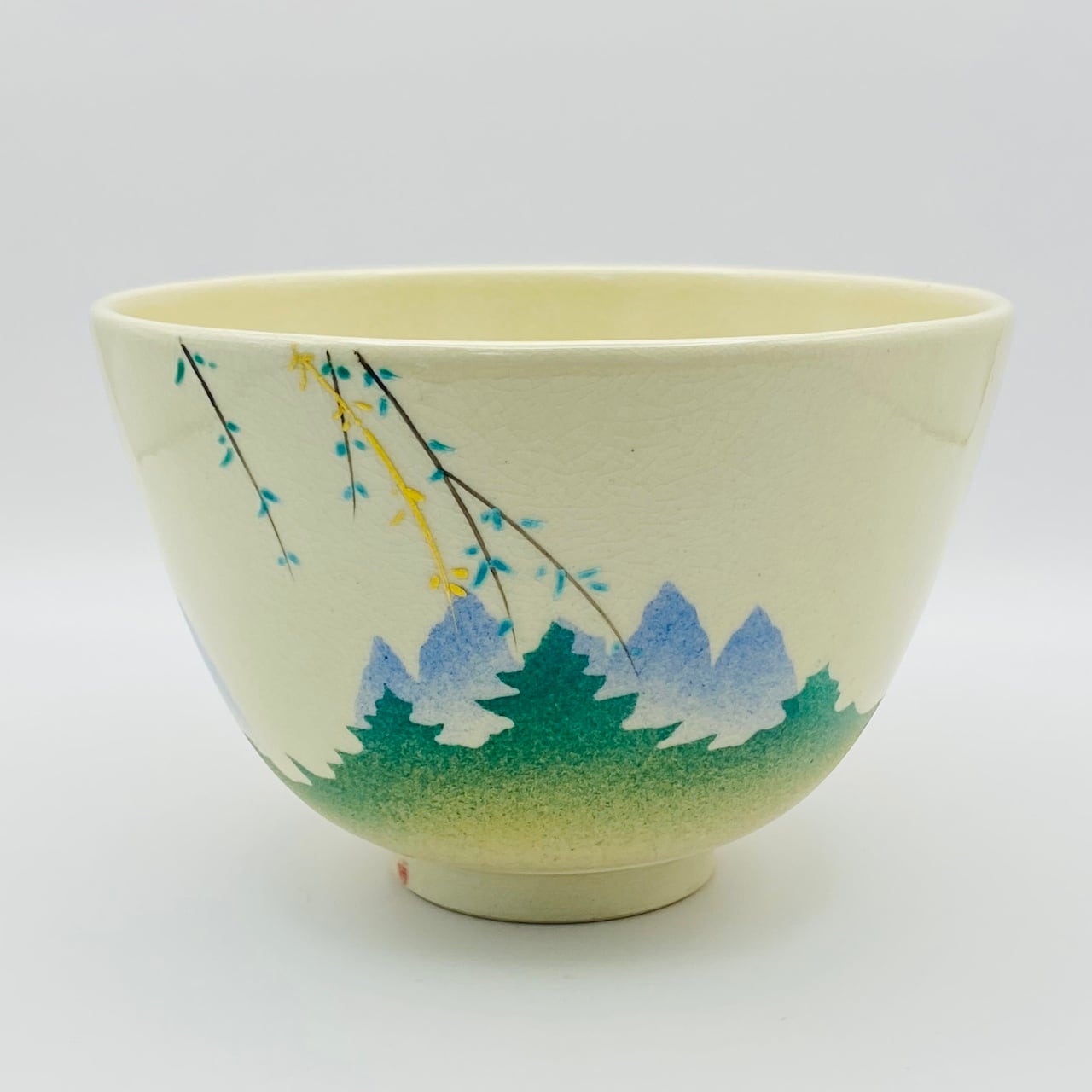 【古物】茶碗 仁清写 柳 通次阿山 共箱入