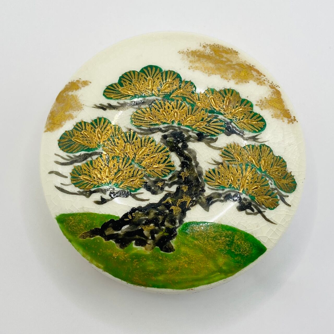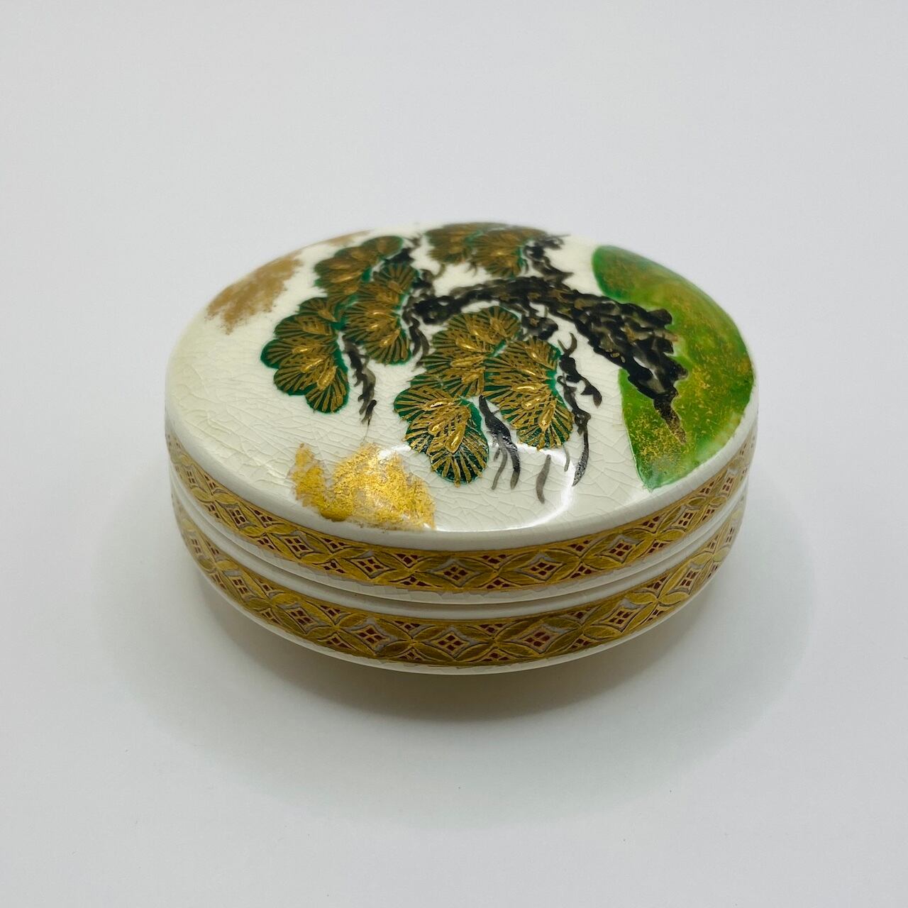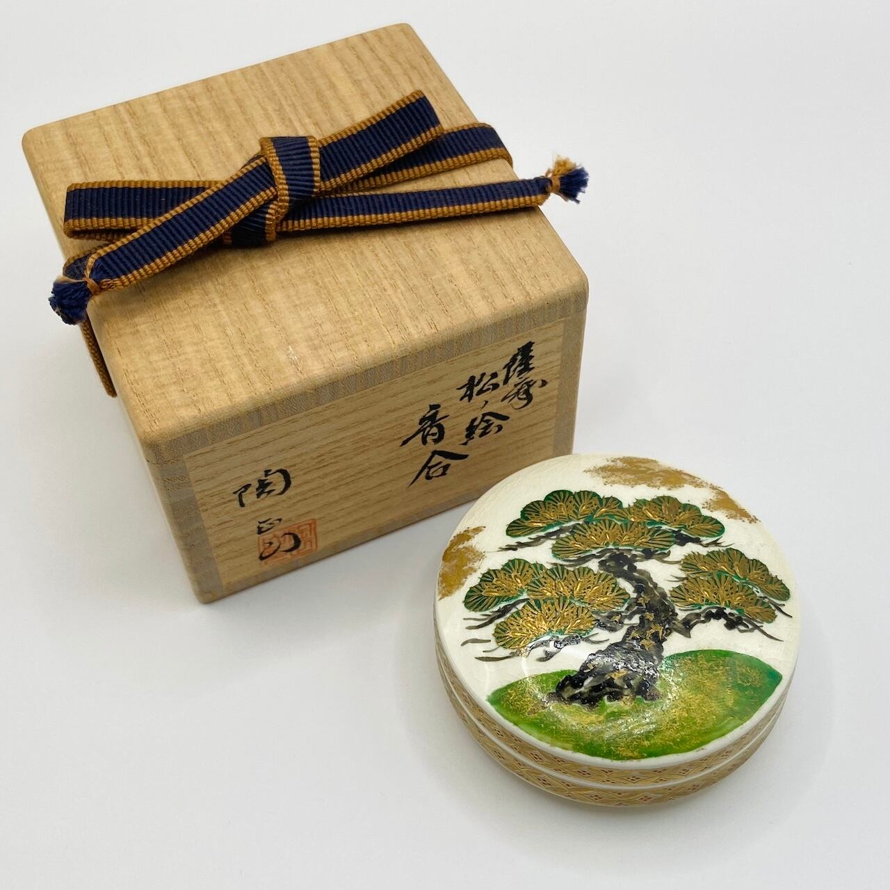 【古物】松ノ絵香合 薩摩焼 橋本陶正山 共箱入