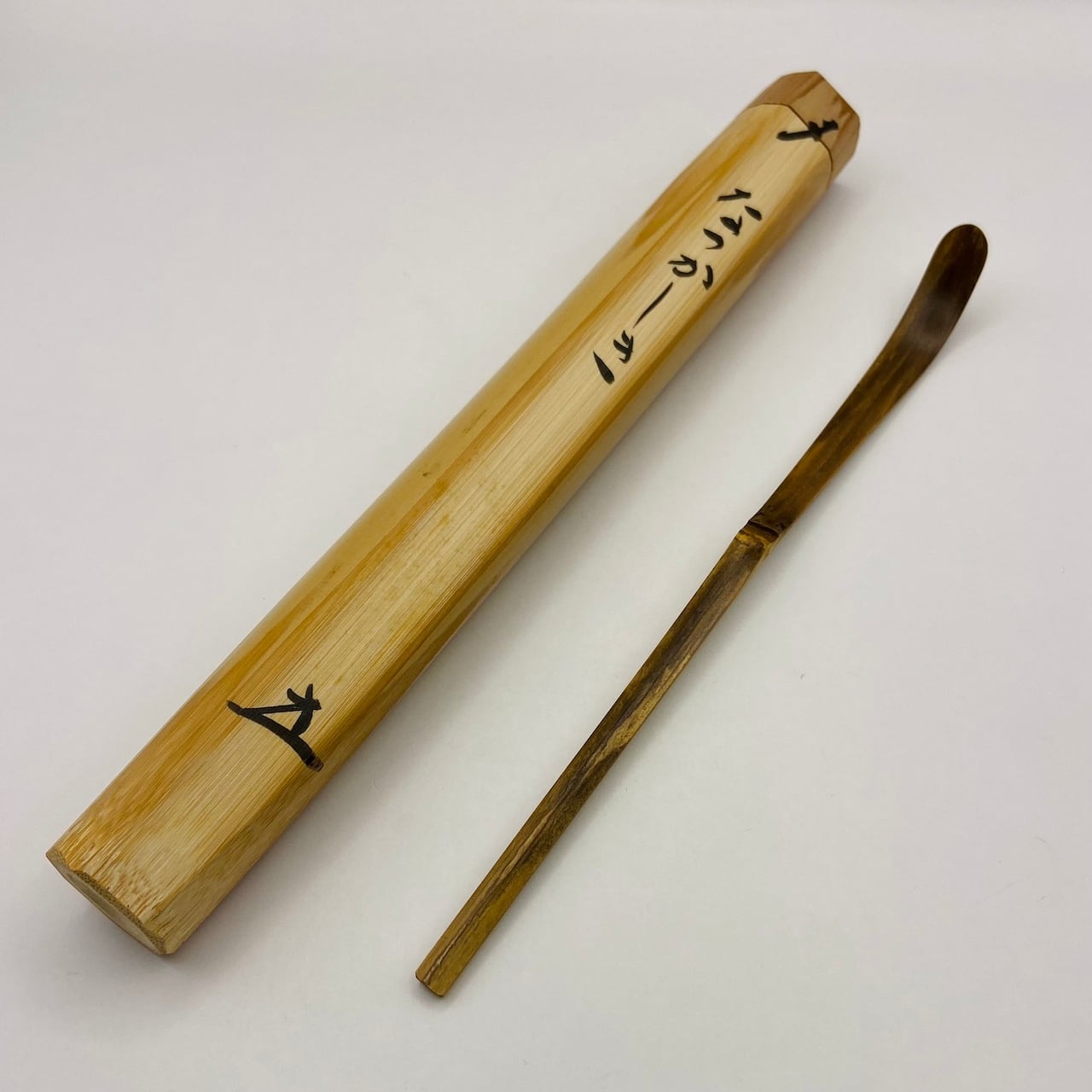 【新古】茶杓 「なつかしき」 福本積應師 影林宗篤作 シミ竹 共筒・共箱入