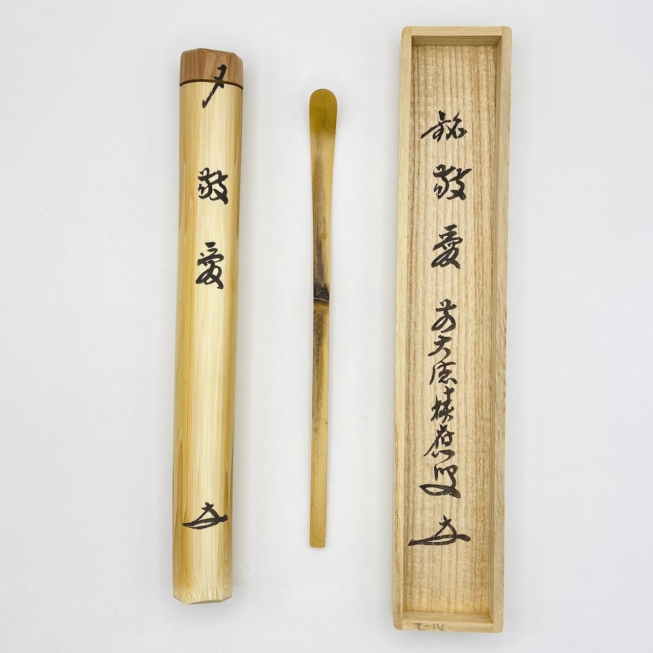 【新古】茶杓 「敬愛」 福本積應師 影林宗篤作 シミ竹 共筒・共箱入
